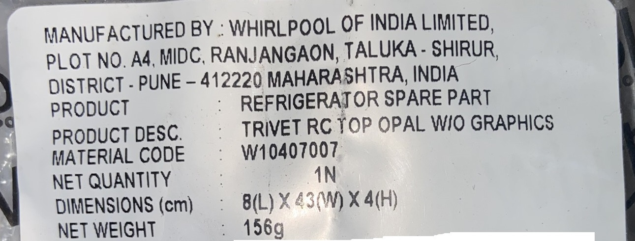 1. IT WILL BE FITTING AT TOP SLOT & FREEZER SLOT OF FREEZER DOOR. 2. IT IS ONLY FOR WHIRLPOOL DOUBLE DOOR FRIDGE OLD MODEL ONLY. 3. IT IS COMPATIBLE FOR 250 LITRE TO 350 LITRE FRIDGE BUT WHIRLPOOL BRAND. 4. IT REPLACEMENT OF BOTTLE SHELF PART NO MATCHED THEN ORDER. A fridge door bottle rack is an essential component of a refrigerator, designed to organize and securely hold bottles such as milk, juice, or wine on the refrigerator door. Typically made from durable materials like plastic or metal, these racks come in various sizes and configurations to accommodate different bottle types and refrigerator models.​ BuySpares Key Features: Material: Most bottle racks are constructed from sturdy plastic or metal to ensure longevity and support the weight of bottles.​ Design: They are designed to fit seamlessly into the door of the fridge, optimizing space and ensuring easy access to stored bottles.​ Dimensions: Sizes vary to fit different refrigerator models. For example, a standard rack might measure approximately 445 x 105 x 105 mm. ​ Darel+3BuySpares+3BuySpares+3 Compatibility: It's crucial to select a bottle rack compatible with your refrigerator's brand and model. Manufacturers often provide compatibility information to assist in choosing the correct rack.​ Darel+4BuySpares+4BuySpares+4 Benefits: Space Optimization: Properly organizing bottles on the door shelf frees up space on internal shelves for other items.​ Accessibility: Having bottles on the door allows for easy retrieval, especially for frequently used items.​ Safety: A secure bottle rack prevents bottles from tipping over or rolling, reducing the risk of spills and breakages.​ Replacement Considerations:
