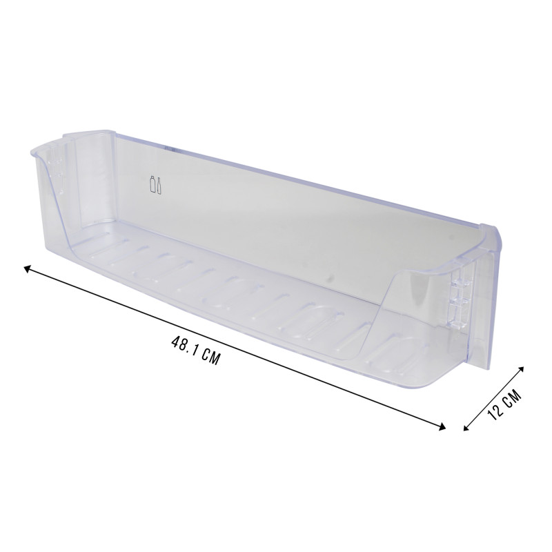 1. IT WILL BE FITTING AT THIRD SLOT FROM BOTTOM & SECOND FROM BOTTOM SLOT OF REF DOOR. 2. IT IS ONLY FOR WHIRLPOOL DOUBLE DOOR FRIDGE OLD MODEL ONLY. 3. IT IS COMPATIBLE FOR 250 LITRE TO 350 LITRE FRIDGE BUT WHIRLPOOL BRAND. 4. IT REPLACEMENT OF BOTTLE SHELF PART NO A2233050000 MATCHED THEN ORDER. A fridge door bottle rack is an essential component of a refrigerator, designed to organize and securely hold bottles such as milk, juice, or wine on the refrigerator door. Typically made from durable materials like plastic or metal, these racks come in various sizes and configurations to accommodate different bottle types and refrigerator models.​ BuySpares Key Features: Material: Most bottle racks are constructed from sturdy plastic or metal to ensure longevity and support the weight of bottles.​ Design: They are designed to fit seamlessly into the door of the fridge, optimizing space and ensuring easy access to stored bottles.​ Dimensions: Sizes vary to fit different refrigerator models. For example, a standard rack might measure approximately 445 x 105 x 105 mm. ​ Darel+3BuySpares+3BuySpares+3 Compatibility: It's crucial to select a bottle rack compatible with your refrigerator's brand and model. Manufacturers often provide compatibility information to assist in choosing the correct rack.​ Darel+4BuySpares+4BuySpares+4 Benefits: Space Optimization: Properly organizing bottles on the door shelf frees up space on internal shelves for other items.​ Accessibility: Having bottles on the door allows for easy retrieval, especially for frequently used items.​ Safety: A secure bottle rack prevents bottles from tipping over or rolling, reducing the risk of spills and breakages.​ Replacement Considerations: