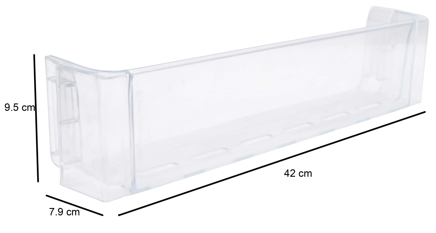 IT WILL BE FITTING AT LAST AND SECOND LAST SLOT OF REF DOOR. IT IS ONLY FOR LG DOUBLE DOOR FRIDGE OLD MODEL AFTER 2010 ONLY. IT IS COMPATIBLE FOR 220 LITRE TO 280 LITRE FRIDGE BUT LG BRAND. A fridge door bottle rack is an essential component of a refrigerator, designed to organize and securely hold bottles such as milk, juice, or wine on the refrigerator door. Typically made from durable materials like plastic or metal, these racks come in various sizes and configurations to accommodate different bottle types and refrigerator models.​ BuySpares Key Features: Material: Most bottle racks are constructed from sturdy plastic or metal to ensure longevity and support the weight of bottles.​ Design: They are designed to fit seamlessly into the door of the fridge, optimizing space and ensuring easy access to stored bottles.​ Dimensions: Sizes vary to fit different refrigerator models. For example, a standard rack might measure approximately 445 x 105 x 105 mm. ​ Darel+3BuySpares+3BuySpares+3 Compatibility: It's crucial to select a bottle rack compatible with your refrigerator's brand and model. Manufacturers often provide compatibility information to assist in choosing the correct rack.​ Darel+4BuySpares+4BuySpares+4 Benefits: Space Optimization: Properly organizing bottles on the door shelf frees up space on internal shelves for other items.​ Accessibility: Having bottles on the door allows for easy retrieval, especially for frequently used items.​ Safety: A secure bottle rack prevents bottles from tipping over or rolling, reducing the risk of spills and breakages.​ Replacement Considerations: Over time, bottle racks may become damaged or worn, compromising their ability to hold bottles securely. Replacing a damaged rack is essential for maintaining an organized and safe refrigerator. When selecting a replacement:​ BuySpares Verify Compatibility: Ensure the rack matches the dimensions and design specified for your refrigerator model.​ Quality: Opt for genuine replacement parts from reputable manufacturers to guarantee durability and proper fit.​ BuySpares+3BuySpares+3BuySpares+3 For example, BuySpares offers a variety of fridge door bottle racks compatible with different brands, such as the Beko Fridge Door Lower Bottle Rack measuring 405 x 105 x 70 mm. ​ Hisense+8BuySpares+8BuySpares+8 In summary, a fridge door bottle rack is a practical accessory that enhances the organization and functionality of your refrigerator. When replacing, always consider compatibility and quality to ensure optimal performance.