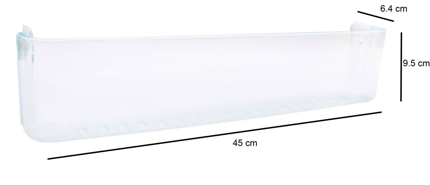 IT WILL BE FITTING AT LAST AND SECOND LAST SLOT OF REF DOOR. IT IS ONLY FOR LG DOUBLE DOOR FRIDGE OLD MODEL BEFORE 2010 ONLY. IT IS COMPATIBLE FOR 280 LITRE TO 320 LITRE FRIDGE BUT LG BRAND. A fridge door bottle rack is an essential component of a refrigerator, designed to organize and securely hold bottles such as milk, juice, or wine on the refrigerator door. Typically made from durable materials like plastic or metal, these racks come in various sizes and configurations to accommodate different bottle types and refrigerator models.​ BuySpares Key Features: Material: Most bottle racks are constructed from sturdy plastic or metal to ensure longevity and support the weight of bottles.​ Design: They are designed to fit seamlessly into the door of the fridge, optimizing space and ensuring easy access to stored bottles.​ Dimensions: Sizes vary to fit different refrigerator models. For example, a standard rack might measure approximately 445 x 105 x 105 mm. ​ Darel+3BuySpares+3BuySpares+3 Compatibility: It's crucial to select a bottle rack compatible with your refrigerator's brand and model. Manufacturers often provide compatibility information to assist in choosing the correct rack.​ Darel+4BuySpares+4BuySpares+4 Benefits: Space Optimization: Properly organizing bottles on the door shelf frees up space on internal shelves for other items.​ Accessibility: Having bottles on the door allows for easy retrieval, especially for frequently used items.​ Safety: A secure bottle rack prevents bottles from tipping over or rolling, reducing the risk of spills and breakages.​ Replacement Considerations: Over time, bottle racks may become damaged or worn, compromising their ability to hold bottles securely. Replacing a damaged rack is essential for maintaining an organized and safe refrigerator. When selecting a replacement:​ BuySpares Verify Compatibility: Ensure the rack matches the dimensions and design specified for your refrigerator model.​ Quality: Opt for genuine replacement parts from reputable manufacturers to guarantee durability and proper fit.​ BuySpares+3BuySpares+3BuySpares+3 For example, BuySpares offers a variety of fridge door bottle racks compatible with different brands, such as the Beko Fridge Door Lower Bottle Rack measuring 405 x 105 x 70 mm. ​ Hisense+8BuySpares+8BuySpares+8 In summary, a fridge door bottle rack is a practical accessory that enhances the organization and functionality of your refrigerator. When replacing, always consider compatibility and quality to ensure optimal performance.