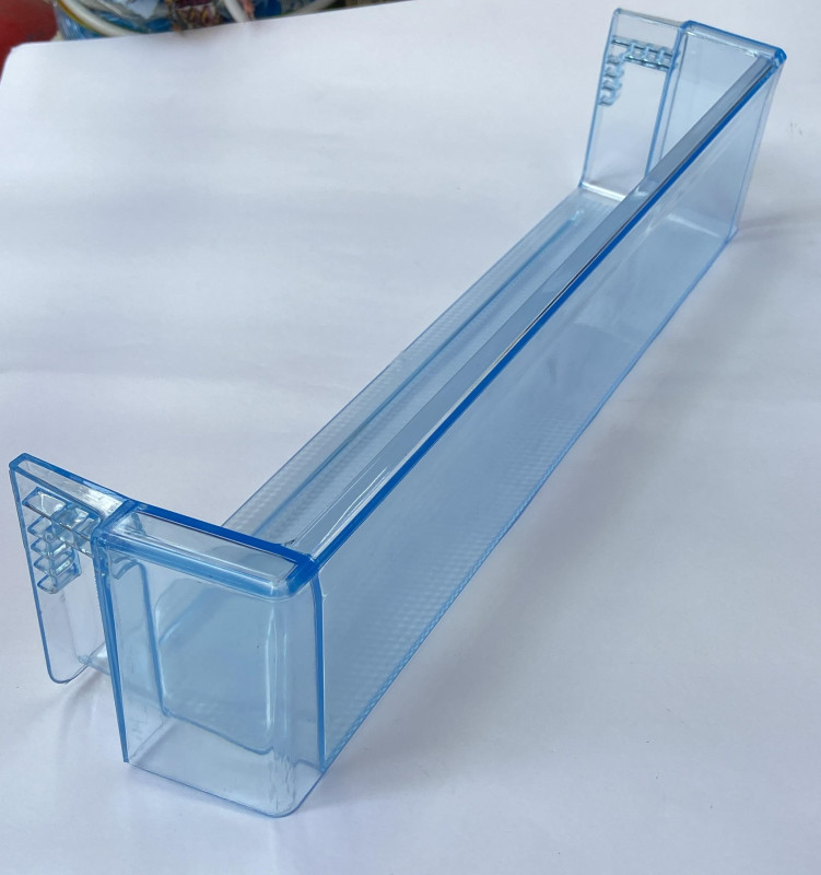 "IT WILL BE FITTING AT LAST AND SECOND LAST SLOT OF REF DOOR. IT IS ONLY FOR LG DOUBLE DOOR FRIDGE OLD MODEL AFTER 2010 ONLY. IT IS COMPATIBLE FOR 280 LITRE TO 320 LITRE FRIDGE BUT LG BRAND." A fridge door bottle rack is an essential component of a refrigerator, designed to organize and securely hold bottles such as milk, juice, or wine on the refrigerator door. Typically made from durable materials like plastic or metal, these racks come in various sizes and configurations to accommodate different bottle types and refrigerator models.​ BuySpares Key Features: Material: Most bottle racks are constructed from sturdy plastic or metal to ensure longevity and support the weight of bottles.​ Design: They are designed to fit seamlessly into the door of the fridge, optimizing space and ensuring easy access to stored bottles.​ Dimensions: Sizes vary to fit different refrigerator models. For example, a standard rack might measure approximately 445 x 105 x 105 mm. ​ Darel+3BuySpares+3BuySpares+3 Compatibility: It's crucial to select a bottle rack compatible with your refrigerator's brand and model. Manufacturers often provide compatibility information to assist in choosing the correct rack.​ Darel+4BuySpares+4BuySpares+4 Benefits: Space Optimization: Properly organizing bottles on the door shelf frees up space on internal shelves for other items.​ Accessibility: Having bottles on the door allows for easy retrieval, especially for frequently used items.​ Safety: A secure bottle rack prevents bottles from tipping over or rolling, reducing the risk of spills and breakages.​ Replacement Considerations: Over time, bottle racks may become damaged or worn, compromising their ability to hold bottles securely. Replacing a damaged rack is essential for maintaining an organized and safe refrigerator. When selecting a replacement:​ BuySpares Verify Compatibility: Ensure the rack matches the dimensions and design specified for your refrigerator model.​ Quality: Opt for genuine replacement parts from reputable manufacturers to guarantee durability and proper fit.​ BuySpares+3BuySpares+3BuySpares+3 For example, BuySpares offers a variety of fridge door bottle racks compatible with different brands, such as the Beko Fridge Door Lower Bottle Rack measuring 405 x 105 x 70 mm. ​ Hisense+8BuySpares+8BuySpares+8 In summary, a fridge door bottle rack is a practical accessory that enhances the organization and functionality of your refrigerator. When replacing, always consider compatibility and quality to ensure optimal performance.