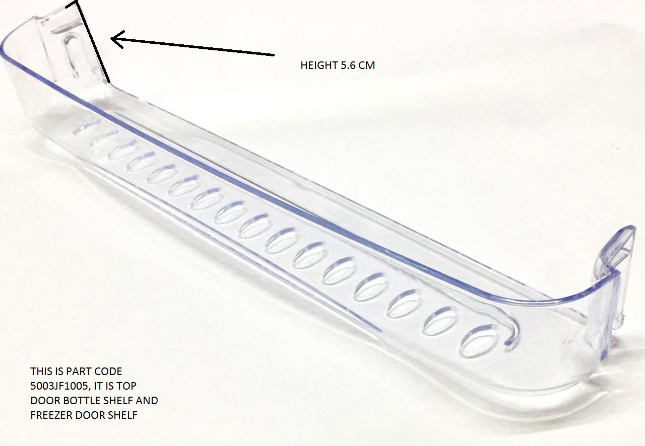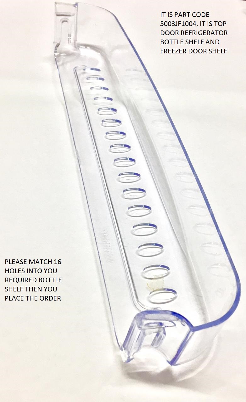 IT WILL BE FITTING AT FREEZER DOOR, AND TOP SIDE OF REF DOOR. IT IS ONLY FOR LG DOUBLE DOOR FRIDGE OLD MODEL BEFORE 2010 ONLY. IT IS COMPATIBLE FOR 280 LITRE TO 320 LITRE FRIDGE BUT LG BRAND. A fridge door bottle rack is an essential component of a refrigerator, designed to organize and securely hold bottles such as milk, juice, or wine on the refrigerator door. Typically made from durable materials like plastic or metal, these racks come in various sizes and configurations to accommodate different bottle types and refrigerator models.​ BuySpares Key Features: Material: Most bottle racks are constructed from sturdy plastic or metal to ensure longevity and support the weight of bottles.​ Design: They are designed to fit seamlessly into the door of the fridge, optimizing space and ensuring easy access to stored bottles.​ Dimensions: Sizes vary to fit different refrigerator models. For example, a standard rack might measure approximately 445 x 105 x 105 mm. ​ Darel+3BuySpares+3BuySpares+3 Compatibility: It's crucial to select a bottle rack compatible with your refrigerator's brand and model. Manufacturers often provide compatibility information to assist in choosing the correct rack.​ Darel+4BuySpares+4BuySpares+4 Benefits: Space Optimization: Properly organizing bottles on the door shelf frees up space on internal shelves for other items.​ Accessibility: Having bottles on the door allows for easy retrieval, especially for frequently used items.​ Safety: A secure bottle rack prevents bottles from tipping over or rolling, reducing the risk of spills and breakages.​ Replacement Considerations: Over time, bottle racks may become damaged or worn, compromising their ability to hold bottles securely. Replacing a damaged rack is essential for maintaining an organized and safe refrigerator. When selecting a replacement:​ BuySpares Verify Compatibility: Ensure the rack matches the dimensions and design specified for your refrigerator model.​ Quality: Opt for genuine replacement parts from reputable manufacturers to guarantee durability and proper fit.​ BuySpares+3BuySpares+3BuySpares+3 For example, BuySpares offers a variety of fridge door bottle racks compatible with different brands, such as the Beko Fridge Door Lower Bottle Rack measuring 405 x 105 x 70 mm. ​ Hisense+8BuySpares+8BuySpares+8 In summary, a fridge door bottle rack is a practical accessory that enhances the organization and functionality of your refrigerator. When replacing, always consider compatibility and quality to ensure optimal performance.