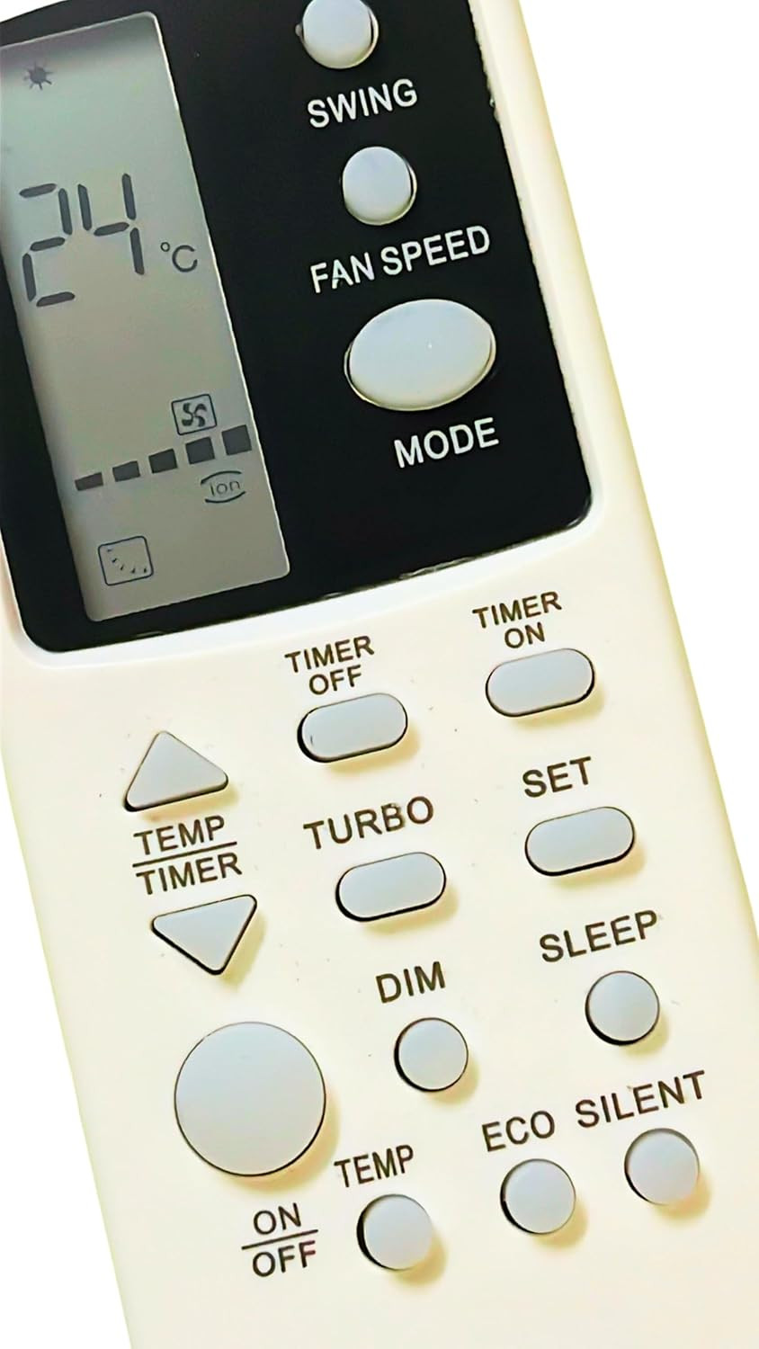 • FUNCTIONS: Features essential AC controls including temperature adjustment, mode selection, fan speed, and timer settings