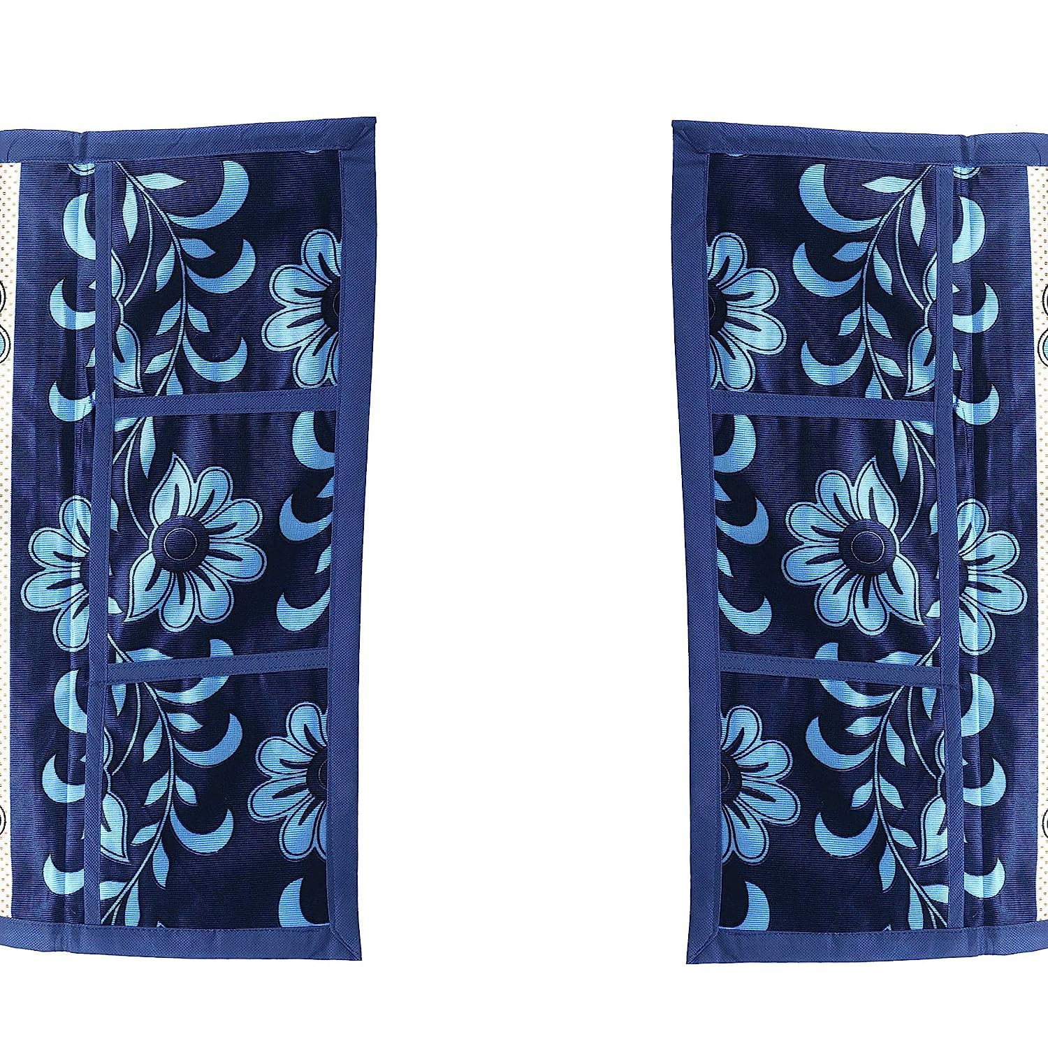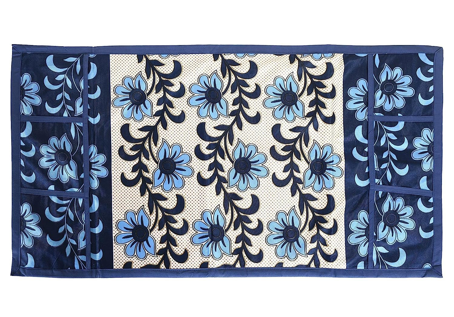 Tiksha Enterprises Floral Print Fridge Cover With Side Pockets|Fridge Top Cover|Refrigerator Single Door Cover|Washable Cotton Material|6 Utility Pockets Cream & Blue
