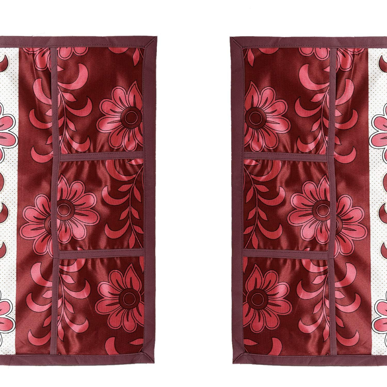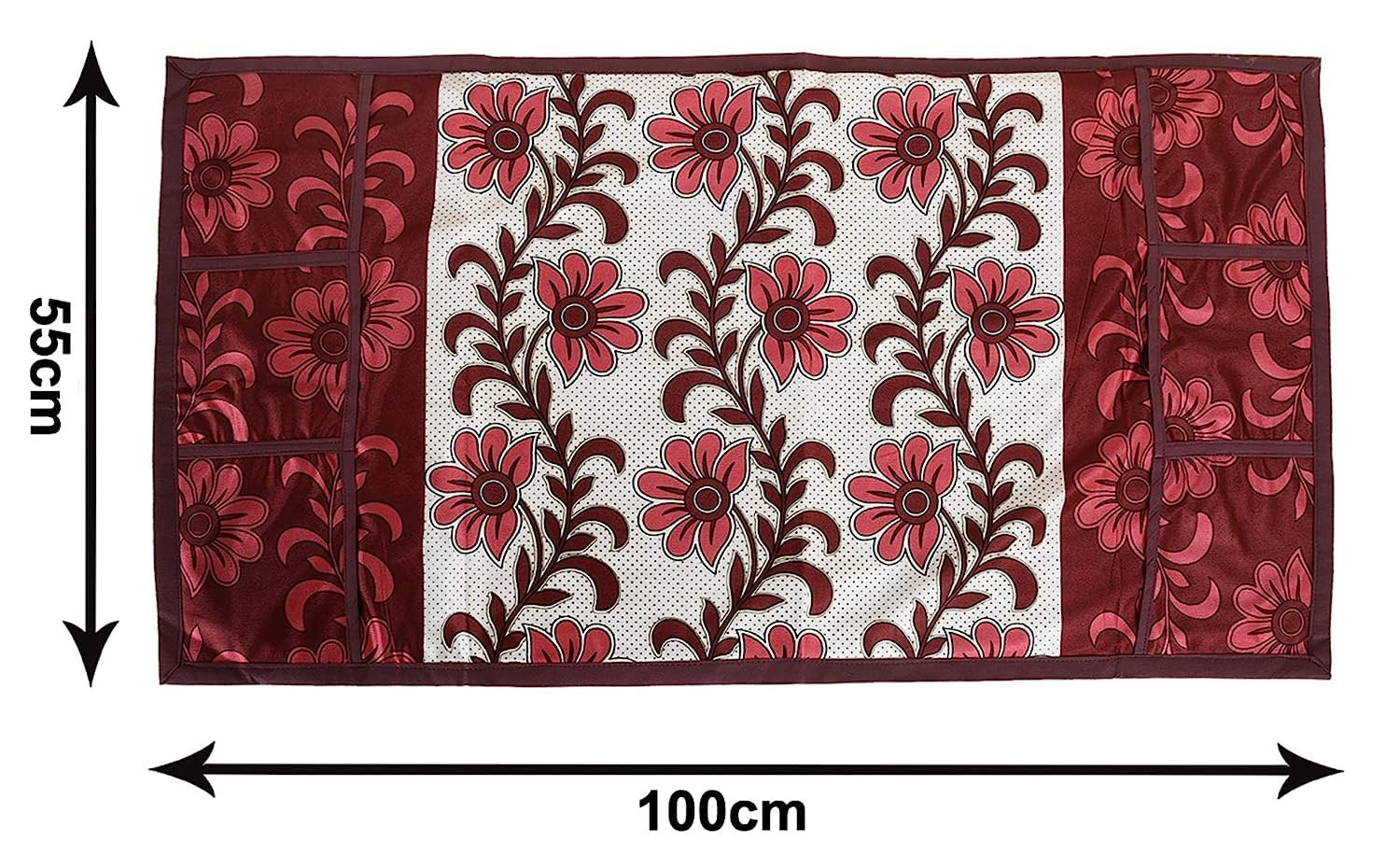 Tiksha Enterprises Floral Print Fridge Cover With Side Pockets|Fridge Top Cover|Refrigerator Single Door Cover|Washable Cotton Material|6 Utility Pockets Cream & Red