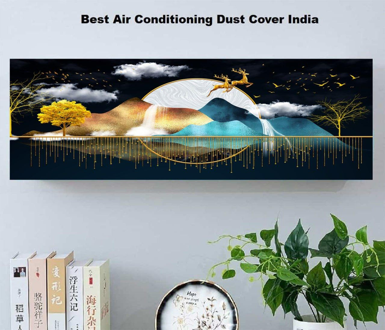 Tiksha Enterprises Golden Sunset Printed Air Conditioning Dust Cover Folding Designer Ac Cover for Indoor Split Ac (97 x 31 x 21), Polyester