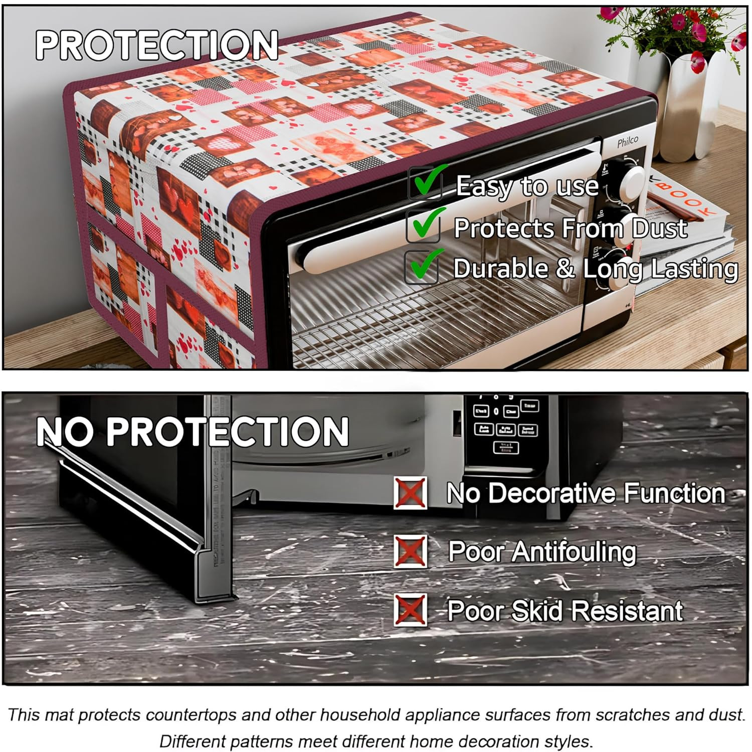 •  Protects From Dust - Our microwave oven cover guards against dust and other particles because it acts as a barrier which keeps your appliance clean and functional so your kitchen remains spotless