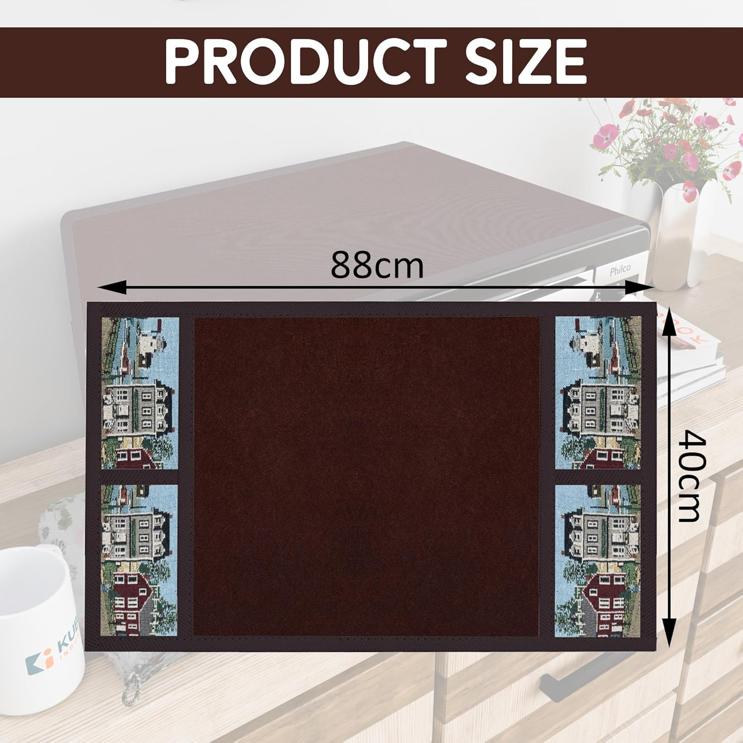 •  Package Contains - (Set of 1) Oven Top Cover | Color - Teddy Brown & Blue | Material - Polyster | Product Dimensions - 90 cm x 40 cm x 1 cm