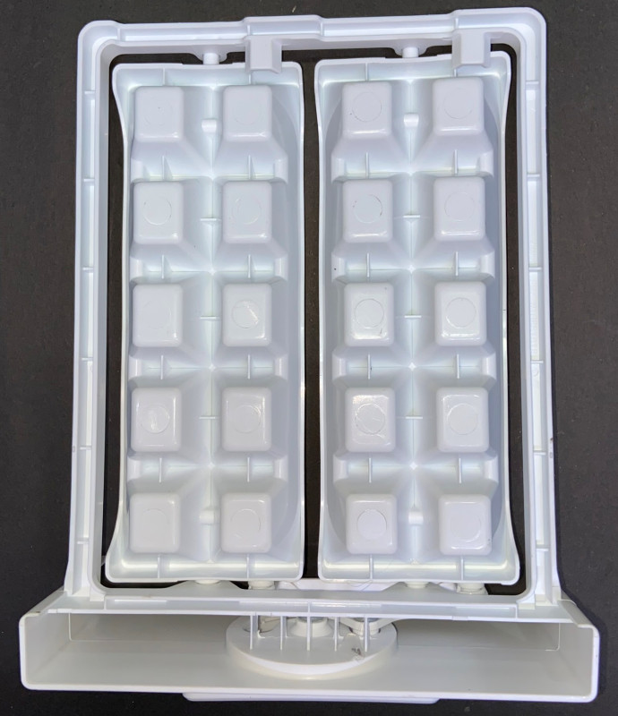 An Ice Twister Tray for Double Door Fridge is a specialized ice maker tray that is typically found in the freezer section of side-by-side or double-door refrigerators. This tray is designed to twist or rotate to help release the ice cubes from the tray and into the collection bin below. Features & Description: Twisting Mechanism: The tray includes a built-in twisting feature that allows the user to easily release the ice cubes by simply turning a dial or knob, ensuring smooth, quick ice retrieval without having to manually pry them out. Size and Fit: Specifically designed for double-door or side-by-side fridges, it usually fits into the freezer compartment, taking up minimal space while providing a steady supply of ice. Material: Typically made from durable, food-grade plastic or silicone, the ice tray is built to withstand freezing temperatures and provide long-lasting performance. Some trays might feature a flexible design for easier removal of ice cubes. Capacity: Most Ice Twister Trays hold 12-20 ice cubes at a time, depending on the model and design. Compatibility: Designed to be compatible with many side-by-side and double-door refrigerators, but it's important to check the model's specifications to ensure proper fit. Ease of Use: The twisting motion makes it user-friendly, especially in cold environments where standard ice cube trays might be difficult to handle. Hygiene: Easy to clean and maintain, these trays can typically be washed in warm, soapy water or placed in the dishwasher, depending on the material. Benefits: Efficient Ice Dispensing: The twisting action reduces the effort required to remove ice cubes and minimizes breakage. Space-Saving: Designed for efficient use of space in the freezer section of your fridge. Durable and Practical: Built to last through constant use while being easy to maintain. This type of tray is ideal for people who prefer a more automated and efficient ice-making process in their double-door fridge, eliminating the hassle of manually removing ice from traditional trays.