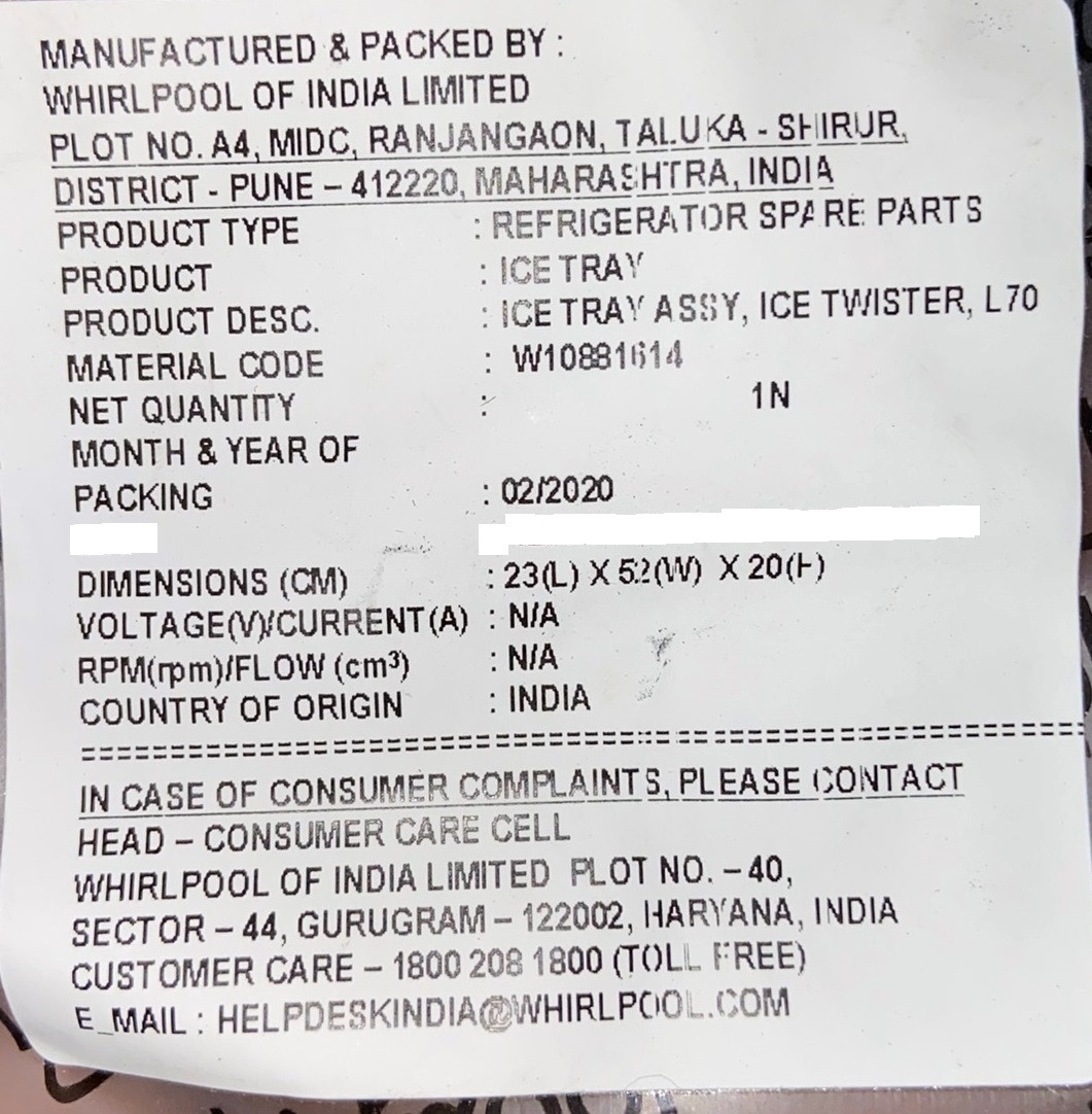 TIKSHA ENTERPRISES TWISTER ICE MAKER TRAY COMPATIBLE FOR WHIRLPOOL DOUBLE DOOR/FROST FREE W10881614 L70 TWISTER ICE TRAY FRIDGE NEW MODEL