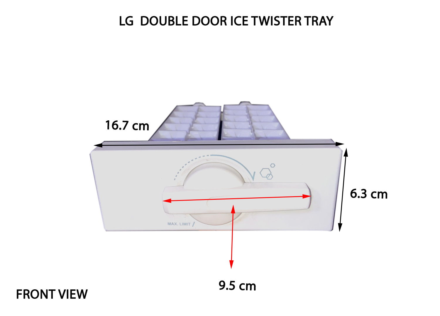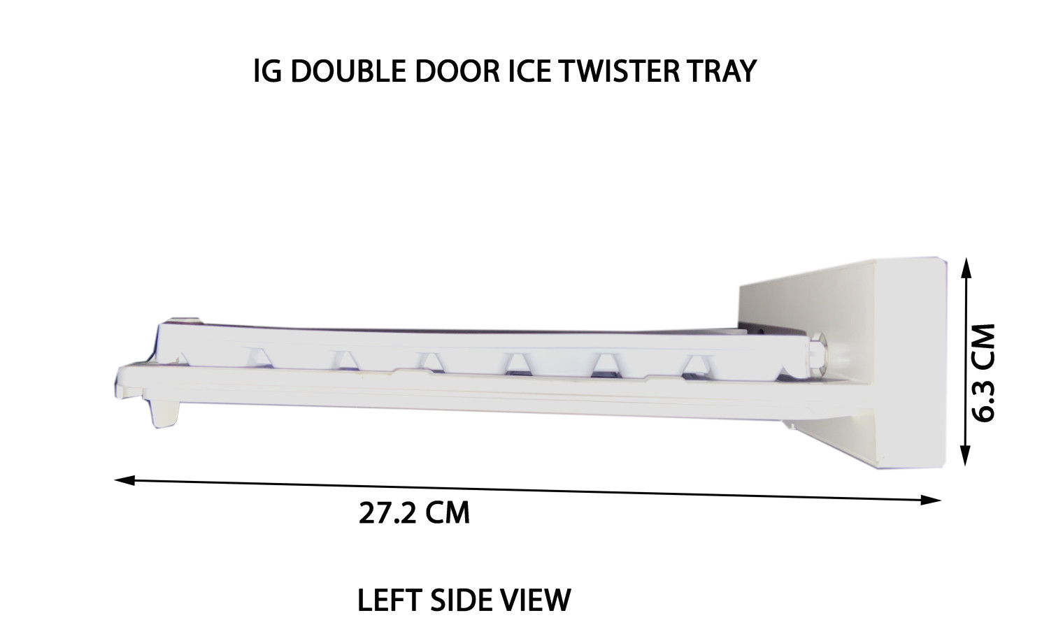 An Ice Twister Tray for Double Door Fridge is a specialized ice maker tray that is typically found in the freezer section of side-by-side or double-door refrigerators. This tray is designed to twist or rotate to help release the ice cubes from the tray and into the collection bin below. Features & Description: Twisting Mechanism: The tray includes a built-in twisting feature that allows the user to easily release the ice cubes by simply turning a dial or knob, ensuring smooth, quick ice retrieval without having to manually pry them out. Size and Fit: Specifically designed for double-door or side-by-side fridges, it usually fits into the freezer compartment, taking up minimal space while providing a steady supply of ice. Material: Typically made from durable, food-grade plastic or silicone, the ice tray is built to withstand freezing temperatures and provide long-lasting performance. Some trays might feature a flexible design for easier removal of ice cubes. Capacity: Most Ice Twister Trays hold 12-20 ice cubes at a time, depending on the model and design. Compatibility: Designed to be compatible with many side-by-side and double-door refrigerators, but it's important to check the model's specifications to ensure proper fit. Ease of Use: The twisting motion makes it user-friendly, especially in cold environments where standard ice cube trays might be difficult to handle. Hygiene: Easy to clean and maintain, these trays can typically be washed in warm, soapy water or placed in the dishwasher, depending on the material. Benefits: Efficient Ice Dispensing: The twisting action reduces the effort required to remove ice cubes and minimizes breakage. Space-Saving: Designed for efficient use of space in the freezer section of your fridge. Durable and Practical: Built to last through constant use while being easy to maintain. This type of tray is ideal for people who prefer a more automated and efficient ice-making process in their double-door fridge, eliminating the hassle of manually removing ice from traditional trays.