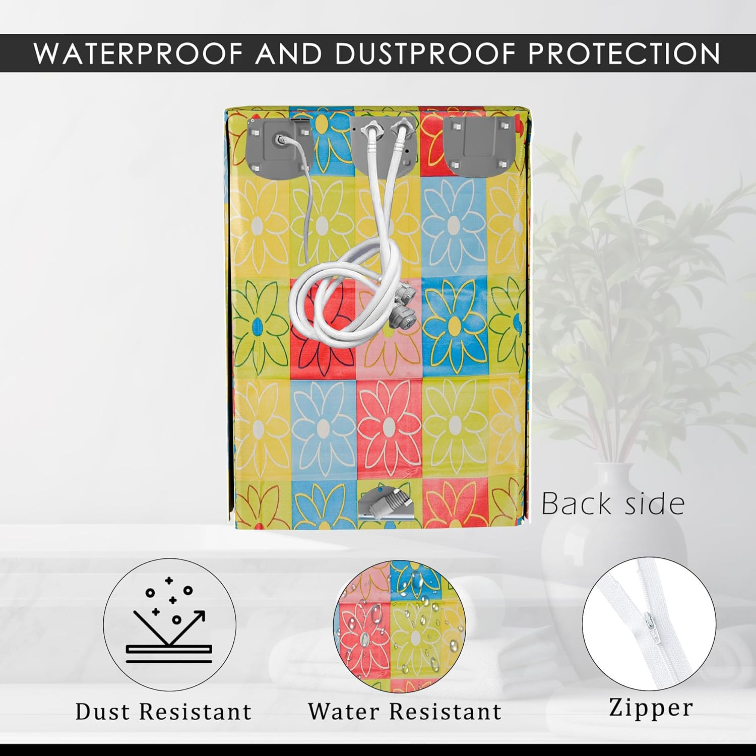 •  WATERPROOF AND DUSTPROOF PROTECTION : Our Washing Machine Cover Ensures That Your Machine Stays Dry And Clean By Providing Dust- And Water-Resistant Protection. It Protects Your Appliance From Moisture And Dust While Being Built To Last, Ensuring That It Remains In Excellent Condition.
