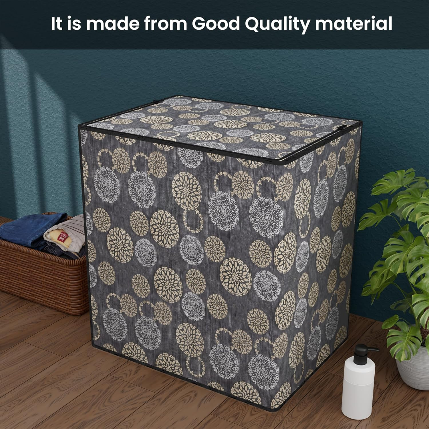 Tiksha Enterprises Waterproof & Dustproof Semi-Automatic Washing Machine Cover 6 kg/6.5 kg/7 kg/7.5 kg with Zip | Top Load Machine Cover With Cuts For Wires & Pipes | Black Golden Gola