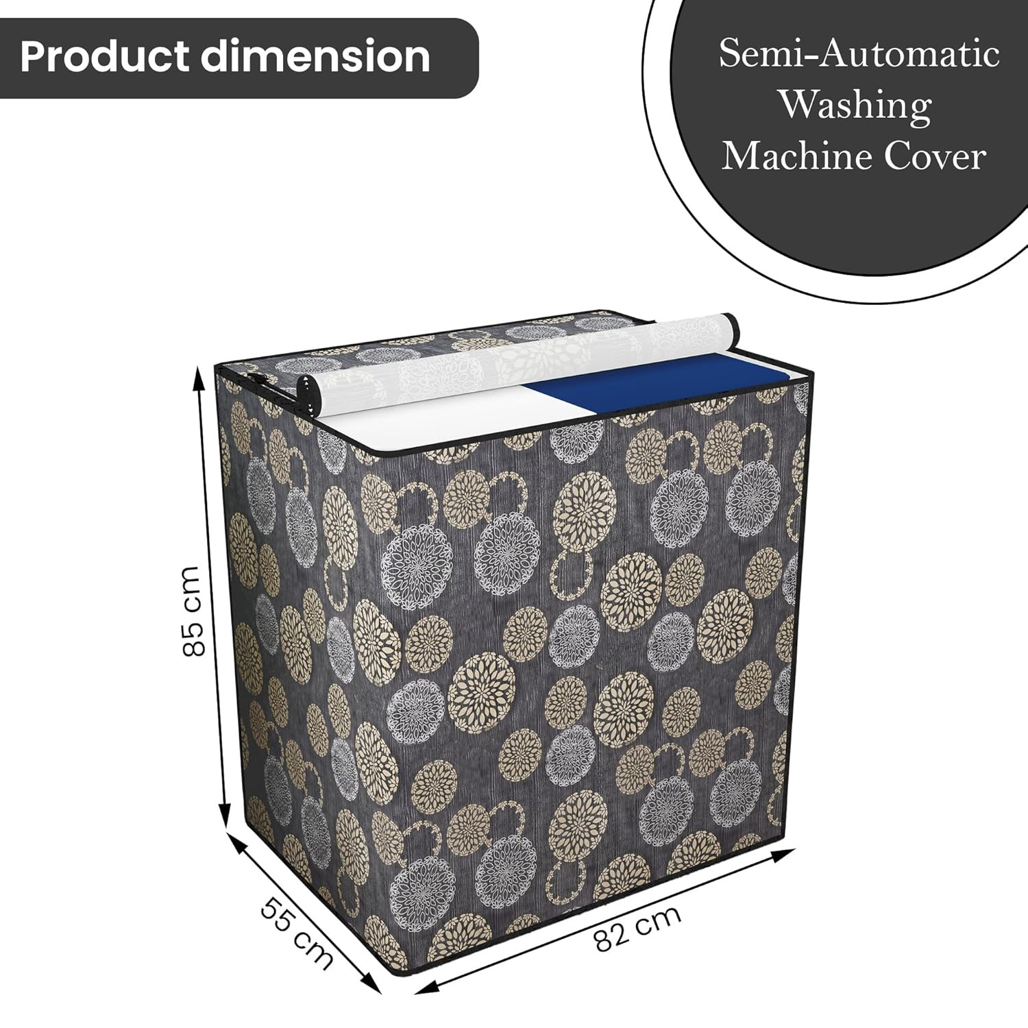•  Keeps machine dust-free - This semi washing machine cover prevents dust and debris from gathering on your appliance, which maintains a cleaner surface and reduces the need for frequent cleaning.