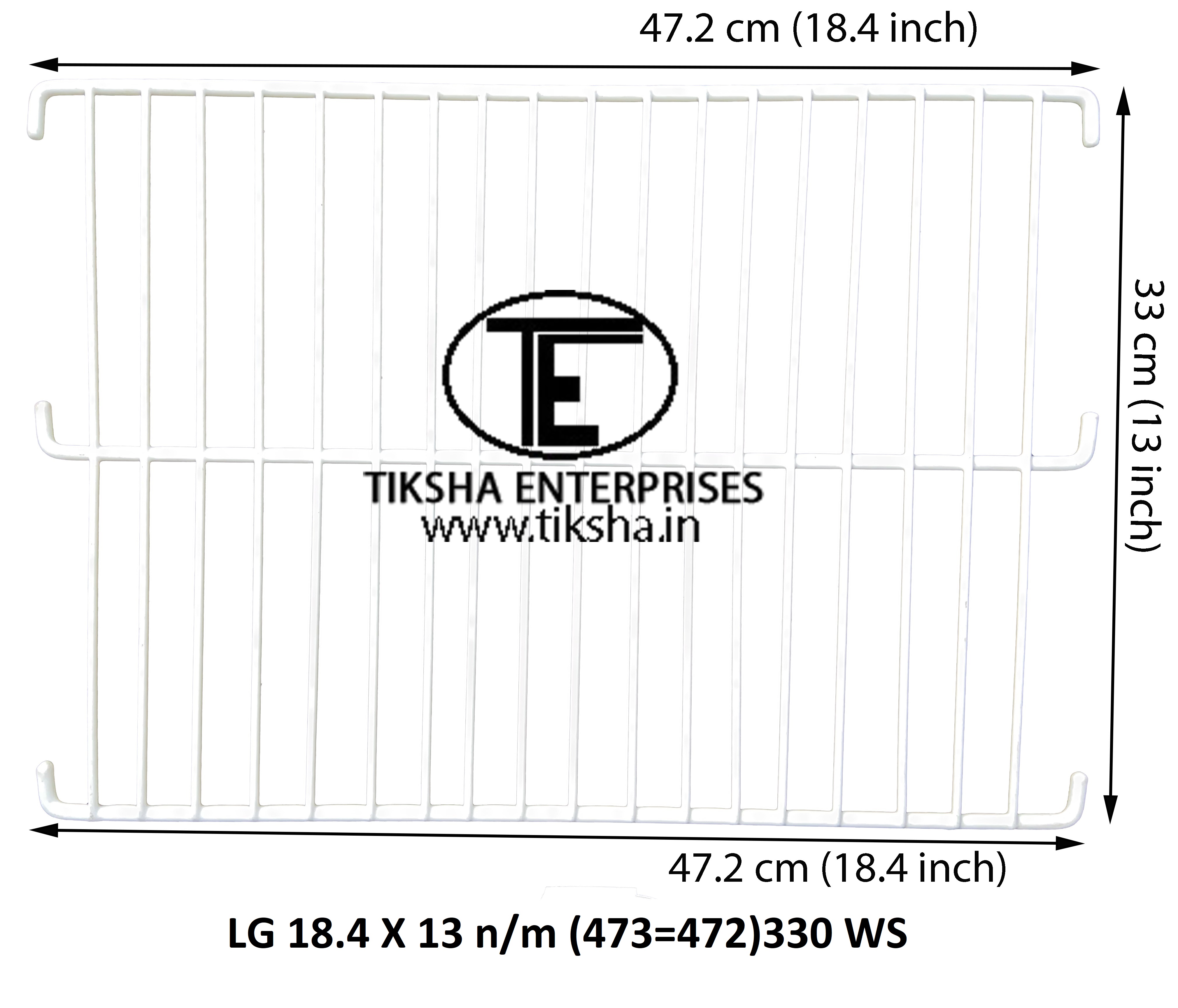Tiksha Enterprises wire shelf (472=472)330 mm compatible for Lg double door/frost free fridge 250 to 300 litre main shelf dimension in cm (472=472)330 with telephone shape.
